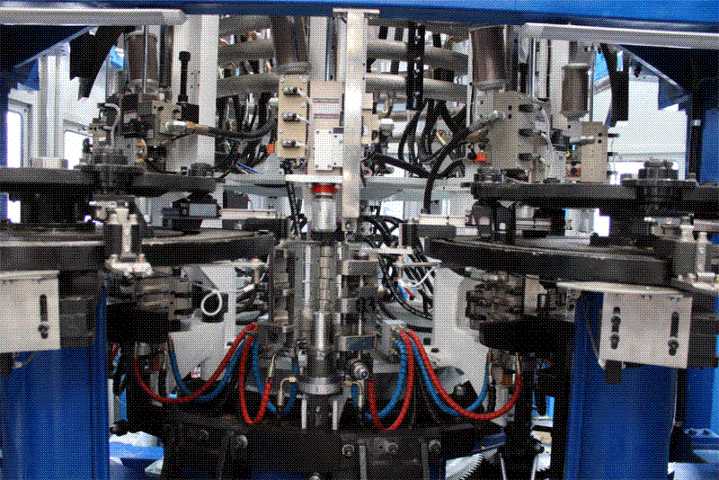 吹瓶部分實施了機械手雙層軌道曲線設計、吹瓶機模號加裝壓力檢測裝置、主吹輪氣源進出采用旋轉式動靜密封氣套(發(fā)明專利產品)、吹瓶機主吹輪采用旋轉式機械補償水套等多項技改措施,大大加強了吹瓶運行的安全性、穩(wěn)定性,并延長了關鍵部件的使用壽命。